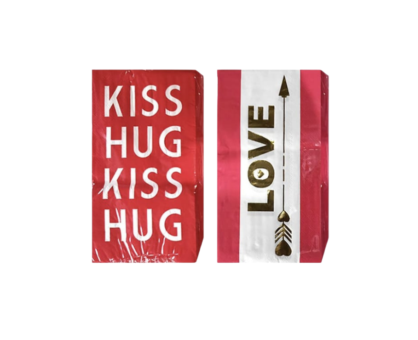The Kiss Hug Red Napkins Pack includes 16 pieces, each measuring 40×33 cm. Perfect for adding a romantic or festive touch to tables at parties, anniversaries, Valentine’s Day celebrations, or special occasions. Disposable and convenient, they make table setup stylish and hassle-free.