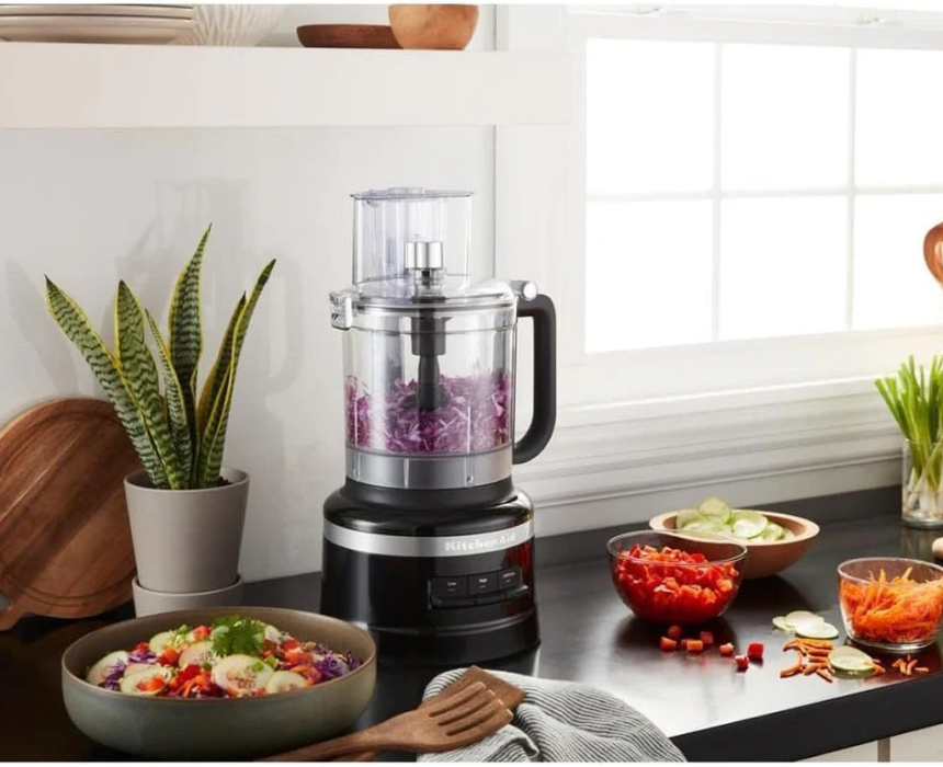 The KitchenAid 3.1L Food Processor in Onyx Black features a large capacity bowl designed for efficient everyday food prep, from chopping and slicing to mixing. Its sleek black finish styles seamlessly on a modern countertop and pairs well with other dark or stainless steel KitchenAid appliances.
