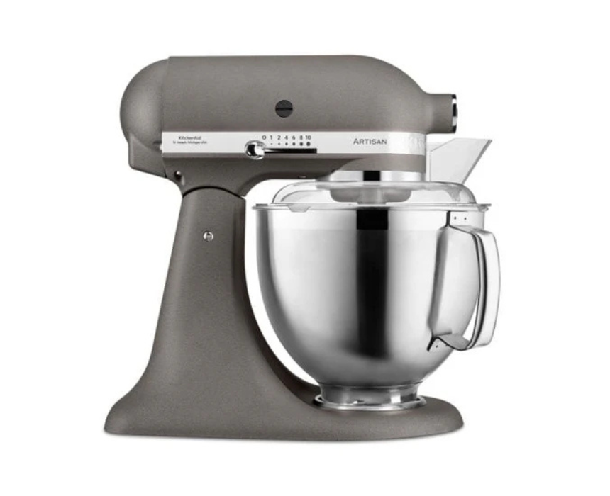 The KitchenAid Artisan Tilt-Head Stand Mixer 4.8L in Imperial Grey features a 4.8 liter bowl and versatile tilt-head design for easy mixing, kneading, and whipping. Its sophisticated Imperial Grey finish adds a modern, stylish touch to any countertop and pairs seamlessly with other KitchenAid appliances for a coordinated kitchen look.