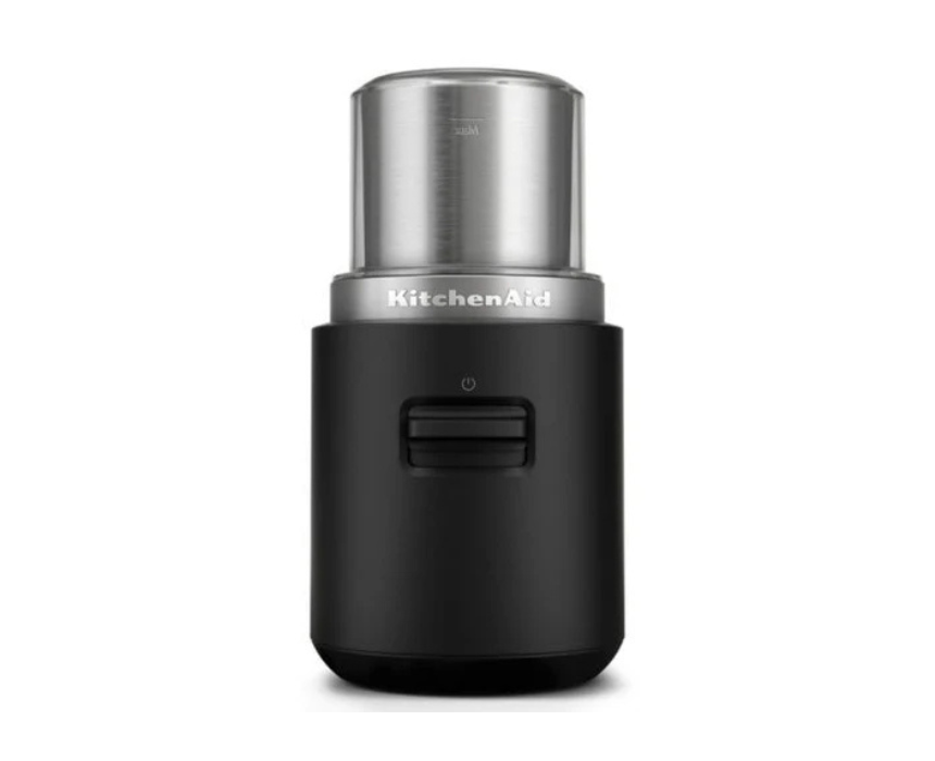 The KitchenAid Go Cordless Blade Coffee Grinder in Matte Black delivers portable, cordless convenience for grinding coffee beans and spices, with a compact design and a rechargeable battery sold separately. Its sleek matte black finish is easy to style on a modern countertop or coffee station, pairing well with other minimalist or KitchenAid Go appliances.