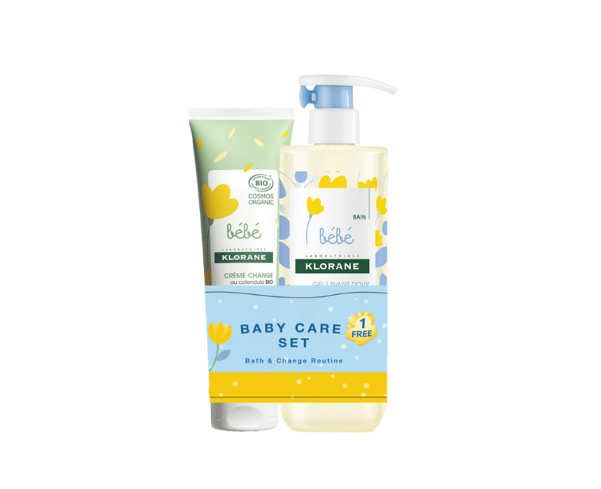 Klorane Baby Certified Organic Change Cream is a gentle, high‑tolerance formula designed to protect and soothe delicate skin during diaper changes. Enriched with organic Calendula, castor oil, and jojoba oil, it helps reduce redness, calm irritation, and strengthen the skin barrier while leaving a breathable protective layer. Included is the Baby Gentle Foaming Gel, a biodegradable cleanser with Calendula extract that softly cleanses body and hair, prevents dryness, and makes bath time comfortable for newborns and infants.