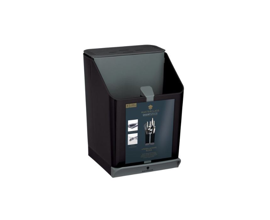 The MasterClass Smart Space Multi-Functional Kitchen Caddy maximizes countertop space while keeping essentials organized. Combining a knife block, utensil holder, knife sharpener, and spoon rest in a compact design, it measures just 15.5 x 14.5 cm. Place it on your worktop for easy access to tools and a clutter-free kitchen while blending seamlessly with any décor.