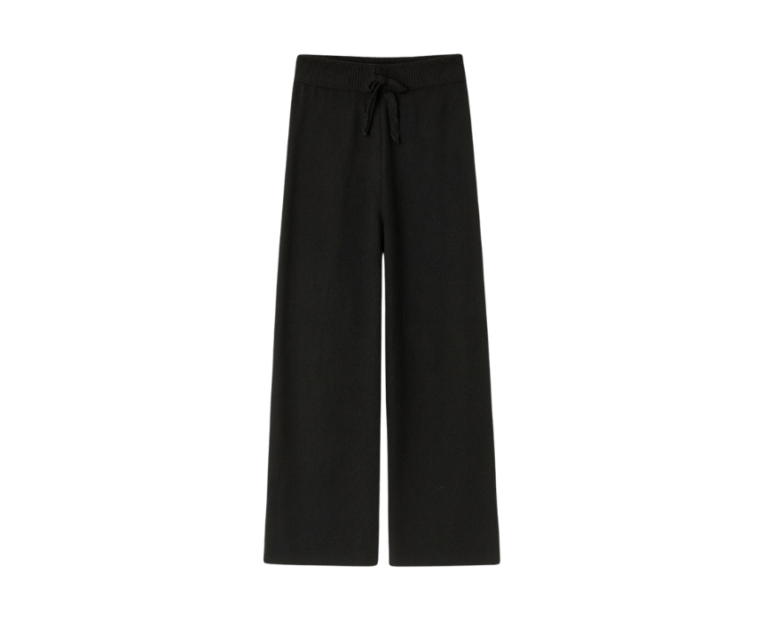 Cozy wide-leg knitted pants in black or grey with a soft fleece interior and elastic waistband. Perfect for staying warm and comfortable this winter. Free size.