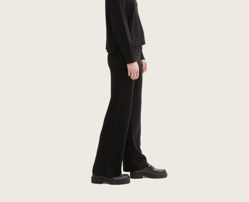 Experience ultimate comfort and effortless style with the Tom Tailor Knitted Black Pant. Designed with a relaxed fit, these pants feature an elastic band waist for a secure and comfortable fit. Crafted from soft knitwear, they are perfect for casual outings or lounging in style.