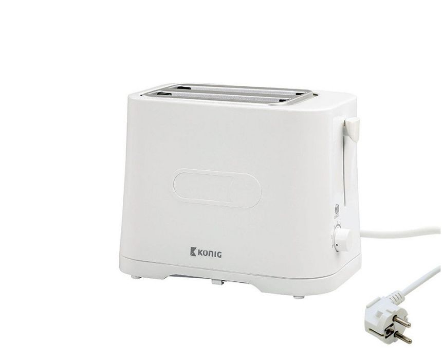 Start your day right with the Konig Toaster, featuring a powerful 700W heating element. This sleek white toaster operates on 220V and comes with two slots, allowing you to toast multiple slices of bread at once. With its user-friendly design and efficient performance, this toaster is perfect for preparing delicious breakfasts or snacks in no time.