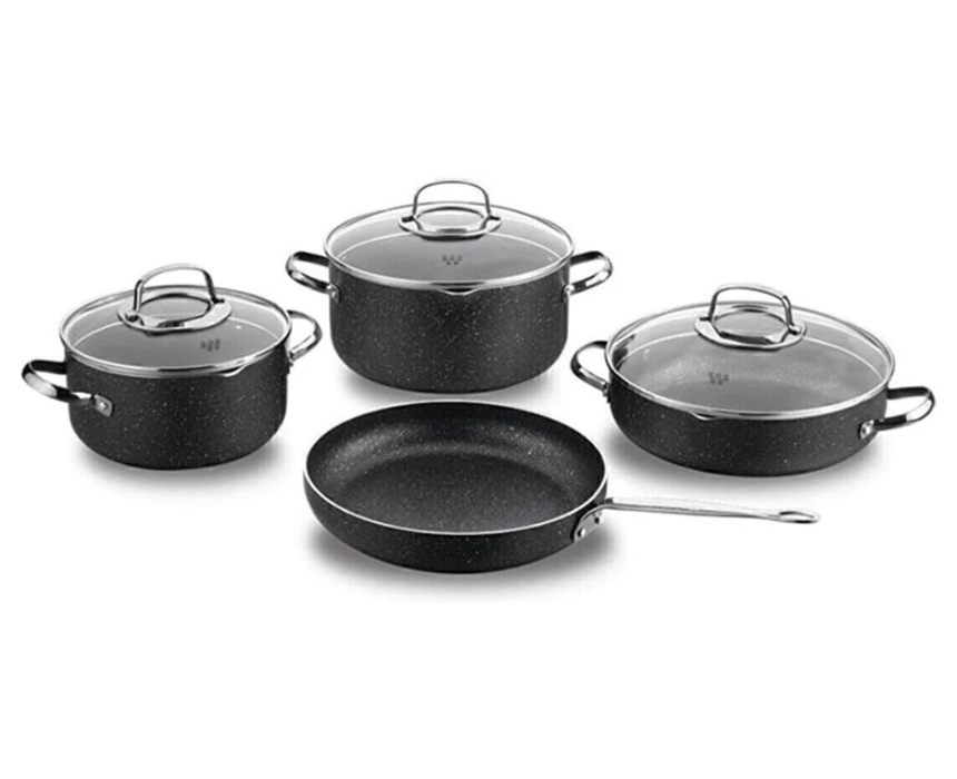 The Korkmaz Galaksi 7-Piece Non-Stick Cookware Set A1371 includes versatile pots and pans with durable non-stick surfaces for easy cooking and cleaning. Its modern design adds a stylish touch to any kitchen, providing both functionality and elegance for everyday meals.
