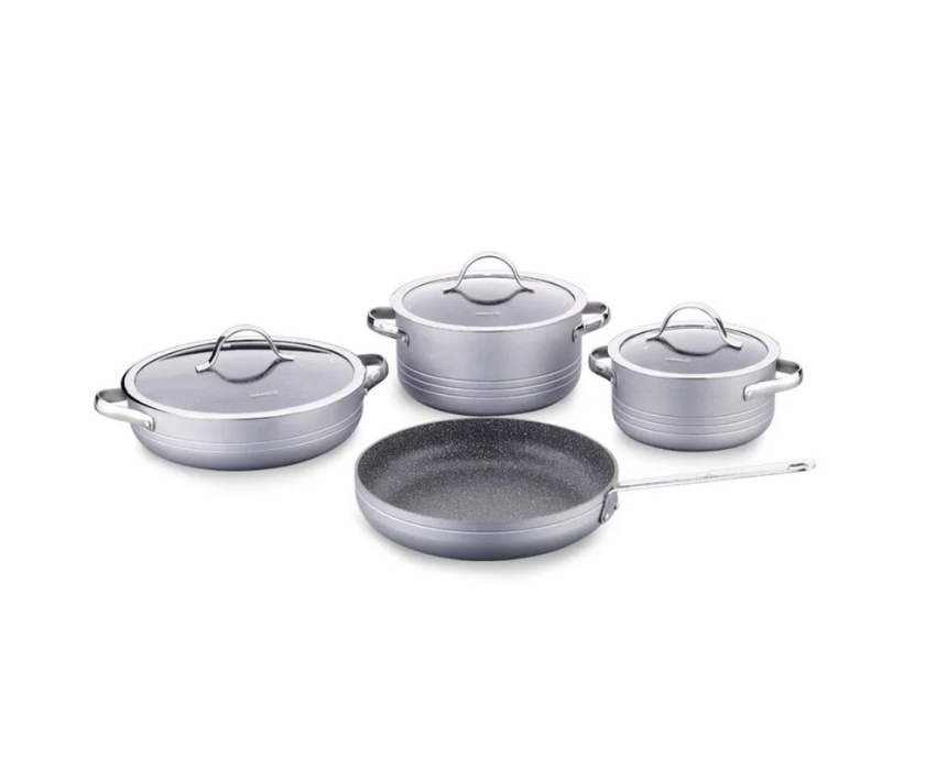 The Korkmaz Linea 7 Piece Non Stick Cookware Set Anthracite A2619 5 offers durable, easy release cooking performance with a modern anthracite finish suited for everyday meals. Its stylish color pairs well with contemporary kitchen décor and can be displayed on open shelves or racks to create a coordinated, upscale cookware look.