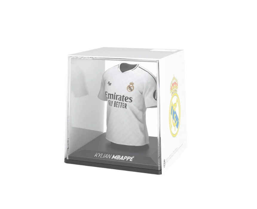 Celebrate Kylian Mbappé’s arrival at Real Madrid with this official MyJersey figure from Splink. Made from durable vinyl, acrylic, and biodegradable plastic, it features his 2024/25 home kit and includes AR experiences via the Splink app. Perfect for desks, shelves, or football memorabilia displays, this collectible is a must-have for fans commemorating one of football’s most exciting transfers.