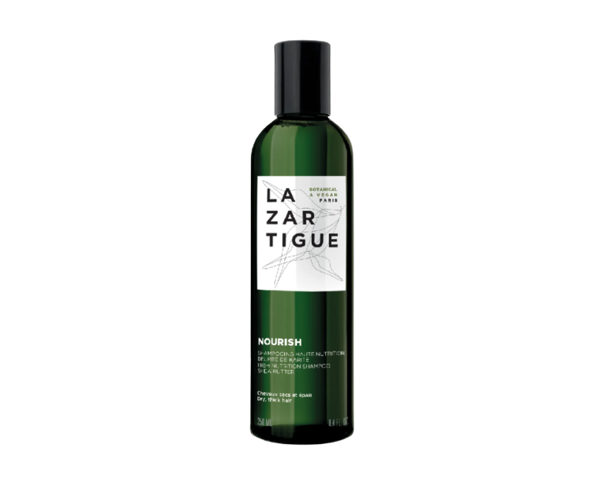 Lazartigue Nourish Shampoo deeply hydrates and restores dry, thick, and frizzy hair with a 94% naturally derived formula enriched with shea butter. It enhances shine, tames frizz, and makes detangling effortless while gently cleansing without stripping natural oils. Use 2 to 3 times per week on wet hair, massage gently, and rinse for soft, strong, and flexible hair from root to tip.