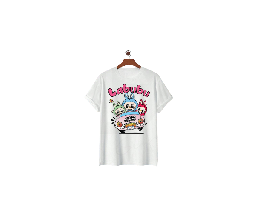 Labubu in the Car T-Shirt made from 100% high-quality cotton for a soft and breathable feel. Features durable DTF printing for vibrant, long-lasting designs. Available in classic white and black. Perfect for a casual yet meaningful statement.