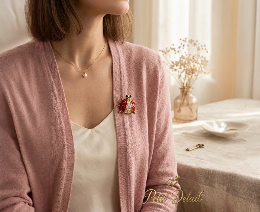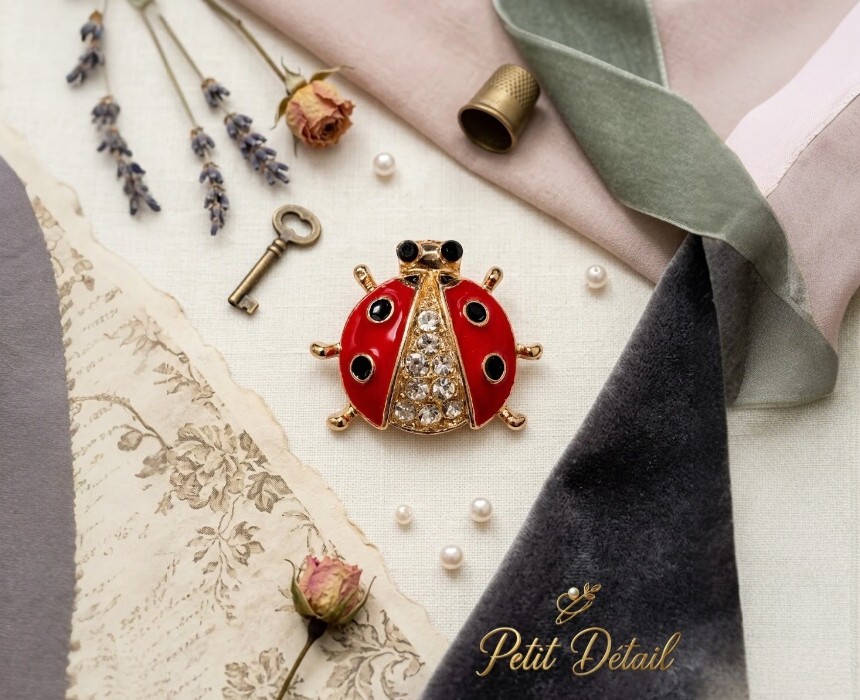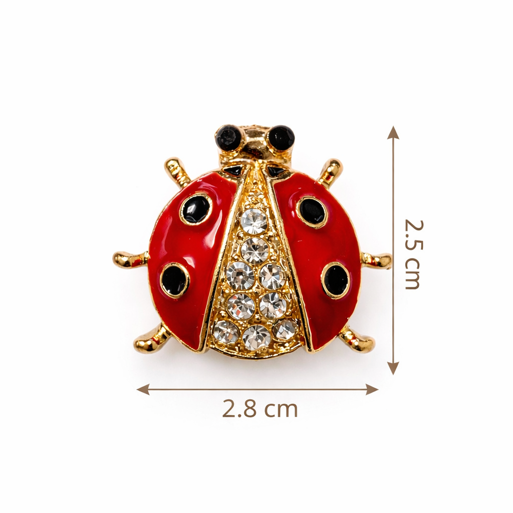 A charming brooch designed to add a playful yet elegant touch to your outfit. This ladybug brooch features a glossy red finish, black dot details, and crystal accents set in a polished gold-tone frame for a bright and eye-catching look.