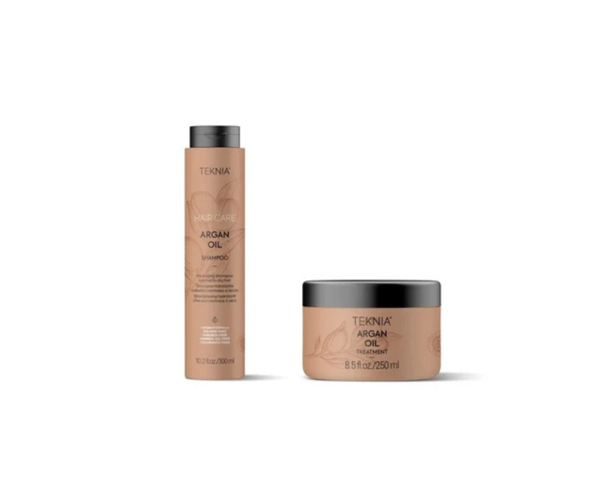 The Lakme Argan Oil Kit includes a 300ml Argan Oil Shampoo and a 250ml Argan Oil Treatment Mask available at 20% off, designed to nourish and restore dry or damaged hair. The shampoo gently cleanses while the mask deeply conditions, leaving hair soft, shiny, and manageable. Apply shampoo to wet hair, rinse, and use the mask once or twice a week for intense hydration, then style as desired.