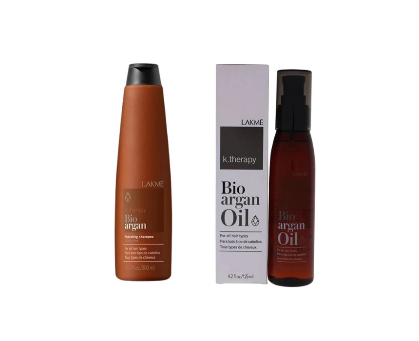 Lakme Bio Argan Hair Shampoo & Oil combines the nourishing power of argan oil with gentle cleansing to hydrate and strengthen hair. Ideal for dry or frizzy hair, it leaves strands soft, shiny, and manageable, promoting healthy-looking hair with a smooth, polished finish.