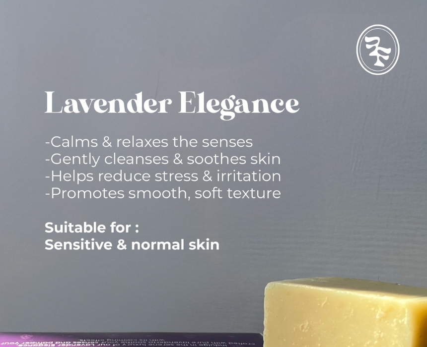 Lavender Elegance Soap gently cleanses and soothes the skin while calming and relaxing the senses. Ideal for sensitive and normal skin, it helps reduce stress and irritation, promoting a soft, smooth texture. Perfect for daily use, this soap brings a serene, spa-like experience to your skincare routine.