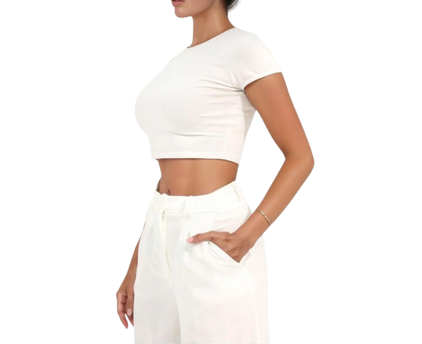 The Lavi Top is a soft and stretchy crop top, perfect for comfortable everyday looks. Pair it with high-waist jeans, skirts, or shorts for a versatile, effortless style. Made from cotton, fabric care includes machine wash at 30°C, steam ironing, no bleaching, do not tumble dry, and do not dry clean.
