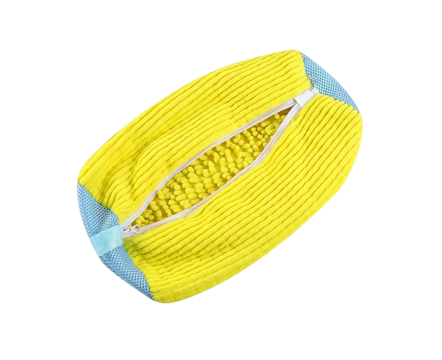 This shoe washing bag features an anti-deformation design that helps maintain shoe shape while protecting both footwear and washing machines. Equipped with built in soft bristles, it provides effective 360-degree cleaning with reduced noise during washing. Durable and reusable, it offers a convenient and reliable solution for easy household shoe care.