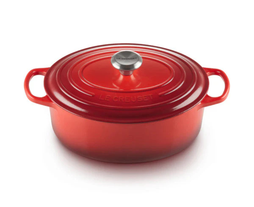 The Le Creuset Oval French Oven Evo 29cm in Cherry is made from premium cast iron, ensuring even heat distribution and excellent retention for slow-cooking, roasting, and braising. Its elegant cherry finish adds a pop of color and style to any kitchen while delivering durable, professional-quality performance for everyday meals or special occasions. Ideal for both stovetop and oven use.