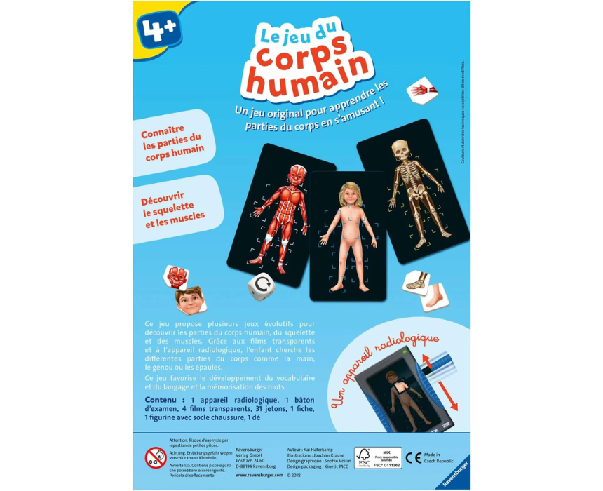 LE JEU DU CORPS HUMAIN is an educational game that helps children learn about the human body through interactive play. It promotes knowledge of anatomy, critical thinking, and memory skills while keeping learning fun and engaging. Perfect for solo or group activities, it encourages curiosity and understanding of the human body in an entertaining way.