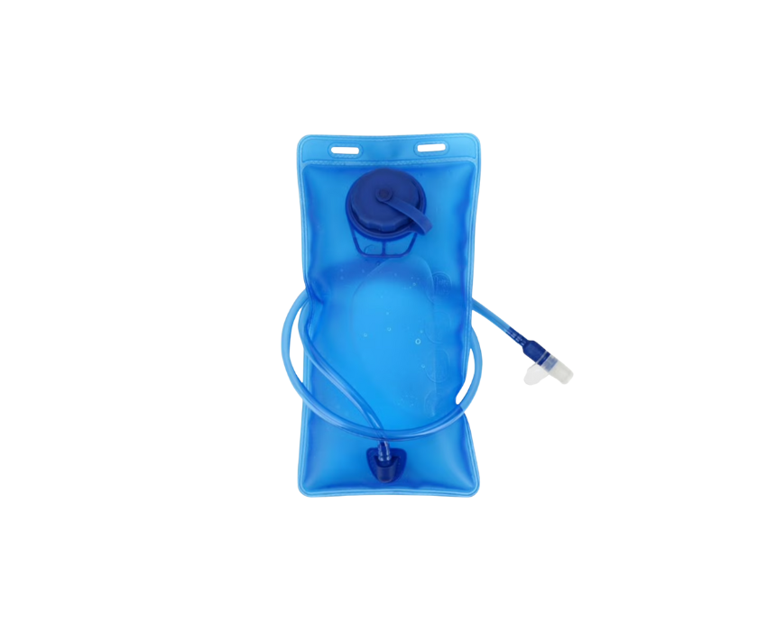 This leak-proof 2L water bladder, measuring 35 × 17 cm and weighing just 0.200 kg, is a lightweight and practical solution for hydration during activity. The vibrant blue folding water bag includes a drinking tube, offering convenience for storage or transport. This item is styled by placing it inside a hydration-compatible backpack, with the drinking tube routed over the shoulder for easy access while on the move.