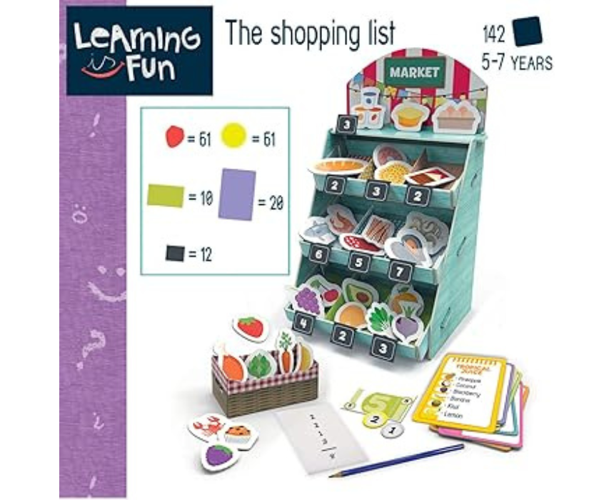 Educa Learning is Fun Shopping List is an engaging educational game designed to help children develop memory, matching, and vocabulary skills through playful shopping-themed activities. Featuring colorful cards and easy-to-follow gameplay, it encourages interactive learning at home or in classrooms. Ideal for group play, it can be enjoyed during family time or used as a fun learning tool for early development.