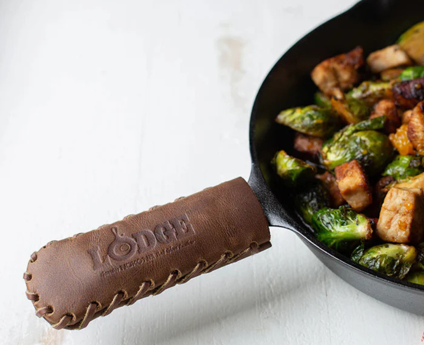 The Lodge × Nokona Leather Handle Holder is handcrafted in the USA from premium full-grain ball glove leather, providing a secure and stylish grip for traditional Lodge cast iron handles. It protects hands from heat up to 600°F while offering durability and timeless design. Perfect for safely transporting hot skillets and enhancing the look of your cookware, this handle holder combines functionality with artisanal craftsmanship.