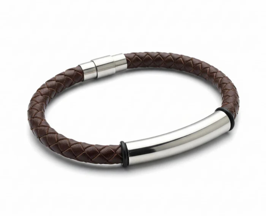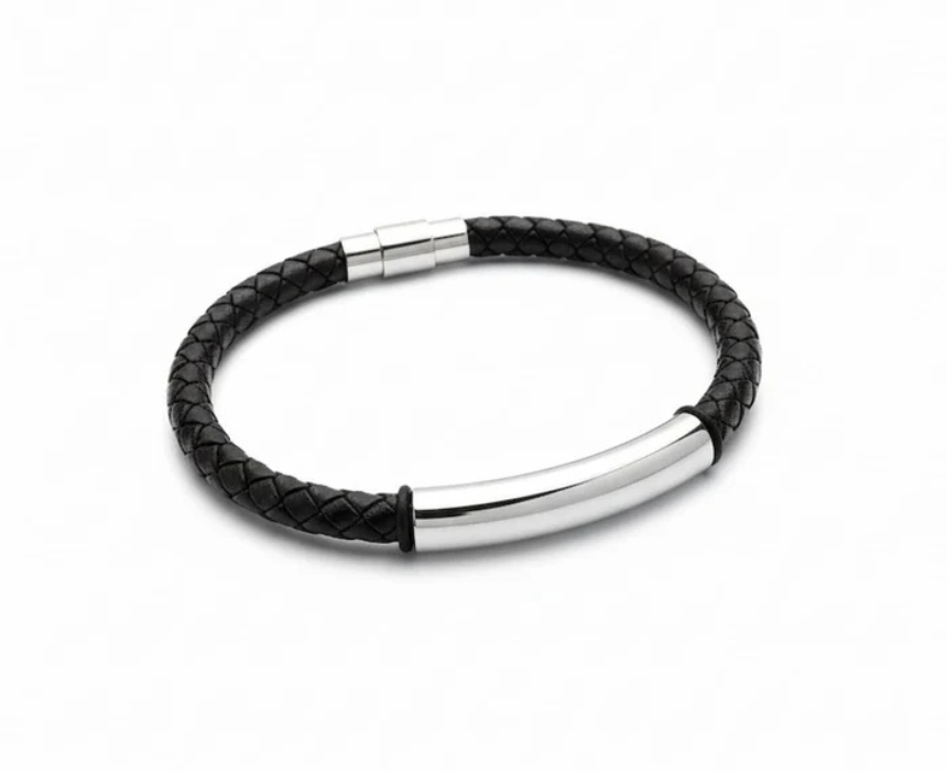 The signature leather link bracelet features a refined combination of linked leather elements that create a sleek and contemporary look. It can be worn alone for a minimalist statement or paired with a watch or other bracelets for a layered wrist style that suits both casual and smart outfits. A versatile accessory that adds texture and sophistication to everyday wear.