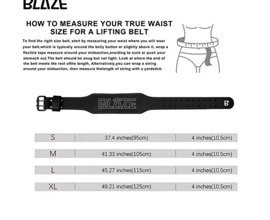 The Blaze Leather Weight Lifting Belt is crafted from genuine cowhide leather to deliver firm core and lower back support during heavy lifts, squats, and deadlifts. Available in Small 95cm x 10cm, Medium 105cm x 10.5cm, Large 115cm x 10.5cm, and Extra Large 125cm x 10.5cm, it features reinforced stitching and a strong buckle for a secure, adjustable fit. Worn snugly around the waist over workout wear, it helps improve lifting form and reduce injury risk.