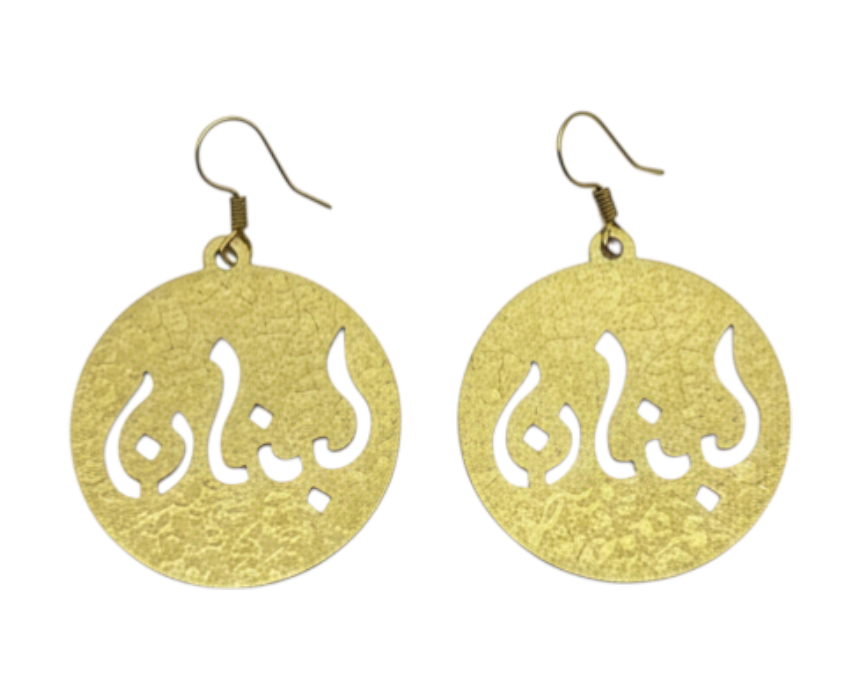In two sizes and two different colours, these handmade earrings with Lebanon carved in Arabic calligraphy create a stylish, cultural statement to be worn for any occasion.