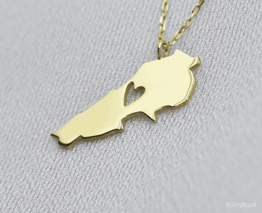 The Lebanon Map Bracelet is a unique 18K gold piece featuring a 2 cm map design on a 45 cm chain. Elegant and symbolic, it’s perfect for everyday wear or as a meaningful gift representing pride and connection to Lebanon.