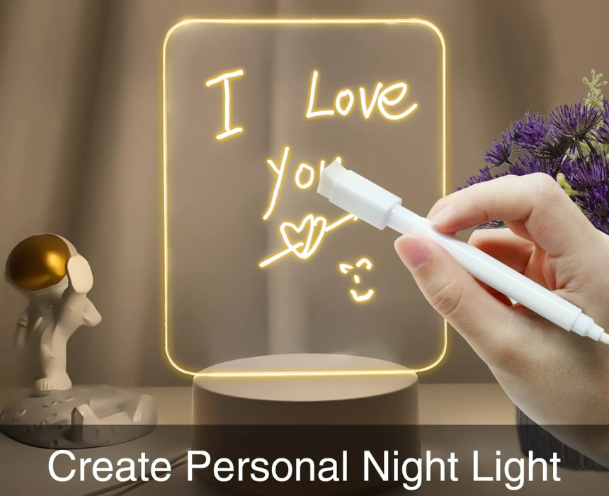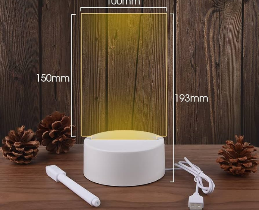 The LED Note Board Lamp features a clear acrylic board that lights up your handwritten notes or doodles, creating a glowing reminder or decorative display. Its compact, USB-powered design fits perfectly on desks, nightstands, or study areas and pairs well with modern or minimalist room décor.