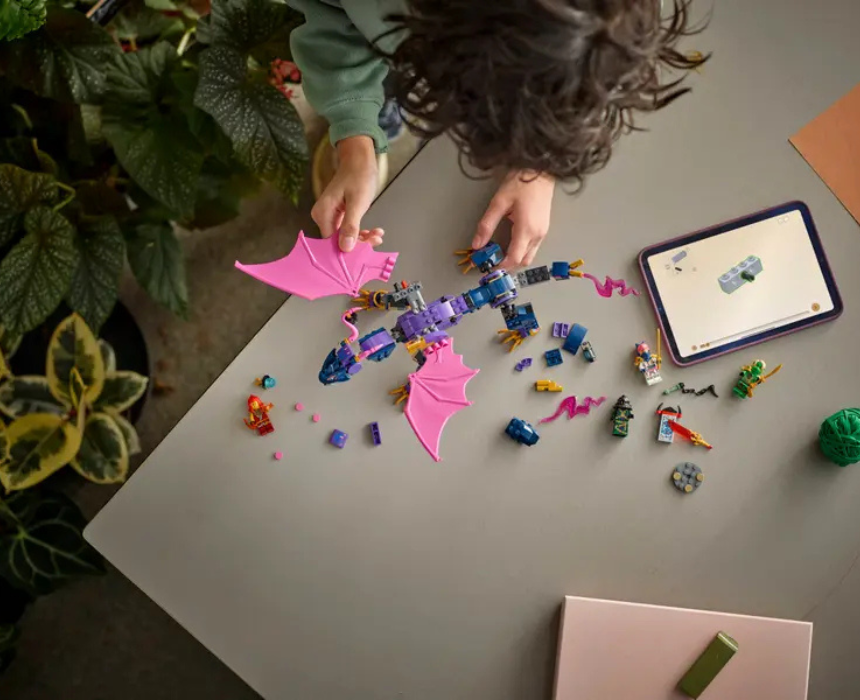 This dynamic building set features a powerful dragon model with articulated parts and character figures designed for action filled adventures. It offers an engaging building experience while encouraging imaginative storytelling and creative play. Ideal for display or play, it can be styled as a striking centerpiece or combined with other sets to expand a fantasy world.