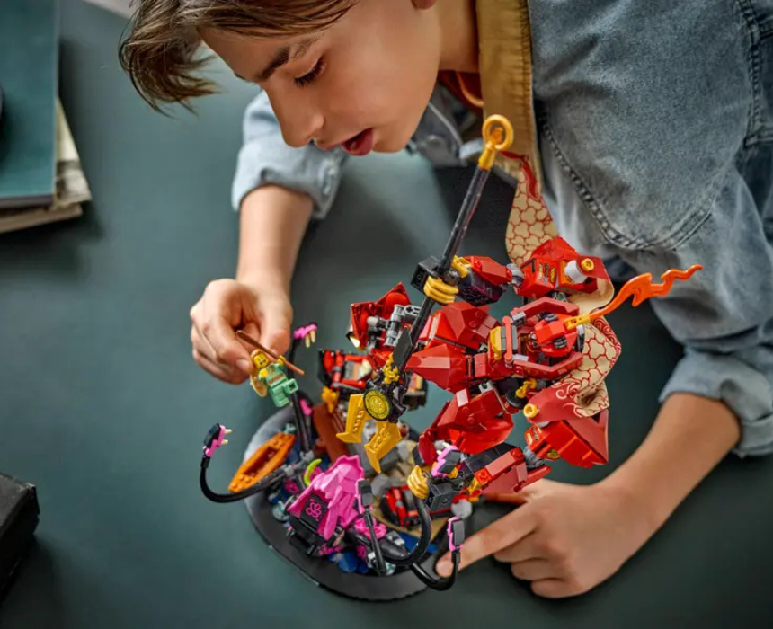 LEGO NINJAGO The Fire Knight Mech 71846 is a detailed building set that lets users assemble a powerful mech figure inspired by the Ninjago universe for action packed storytelling and imaginative play. Inspired by :contentReference[oaicite:1]{index=1}, it features articulated components and mini figure elements that enhance interactive scenarios. Once completed, it can be styled as a display piece on shelves or used for dynamic play setups on a tabletop.