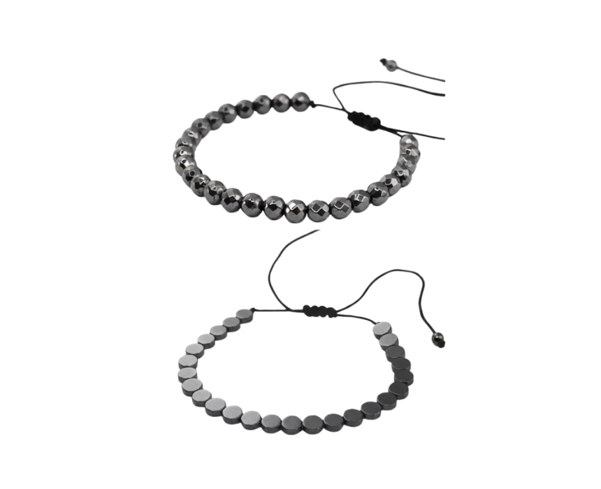 Les Deux Nobles unites two hand-carved hematite bracelets designed for the modern gentleman who values strength and refinement. Titan features rugged, organic-cut beads that embody power and resilience, while Le Raffiné showcases sleek octagonal cuts for a polished, architectural finish. Crafted from globally sourced materials, handmade, waterproof and sweatproof, this set suits men who dare to stand out and can be styled solo or stacked for a bold, intentional look.