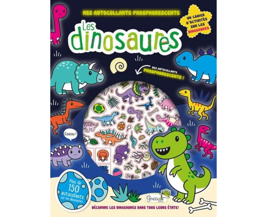 Les Dinosaures Mes Autocollants Phosphorescents is a fun sticker set featuring glow-in-the-dark dinosaur designs that delight young children. Perfect for decorating bedrooms, school supplies, or craft projects, it encourages creativity and imaginative play. Its bright, phosphorescent stickers make it an engaging and entertaining activity for kids, day or night.