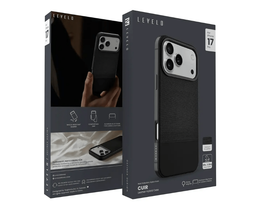 The Levelo Cuir leather hybrid case is designed to protect the iPhone 17 Pro and Pro Max with a refined and durable build. It features a smooth PU leather finish, strong MagSafe compatibility, and reinforced aluminum protection around the camera and buttons. Ideal for daily use, it combines shock resistant performance with a classic and elegant design.