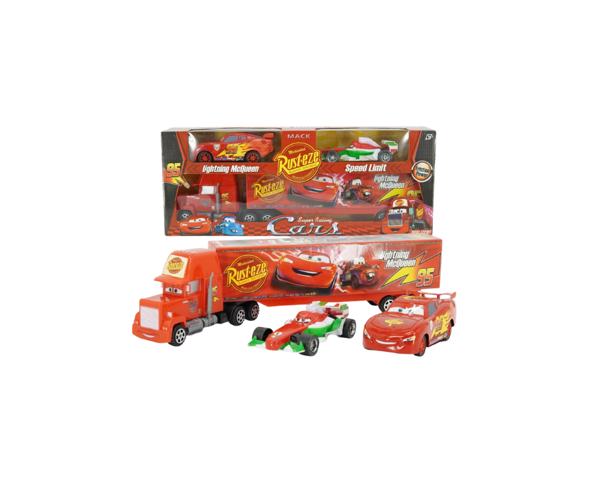 This exciting Cars toy set includes one Lightning McQueen car, one Mack truck transporter, and one Francesco Bernoulli car for hours of imaginative play. Designed for ages 3 and up, the 55×20 set lets kids recreate thrilling racing adventures and transport their favorite characters with the Mack truck. Perfect for young fans of Cars to enjoy solo or with friends.
