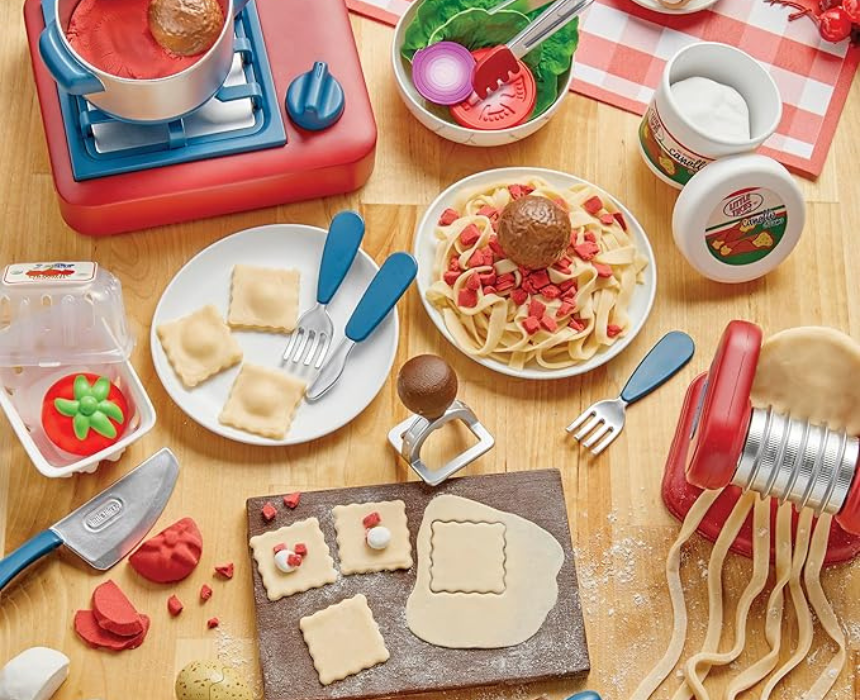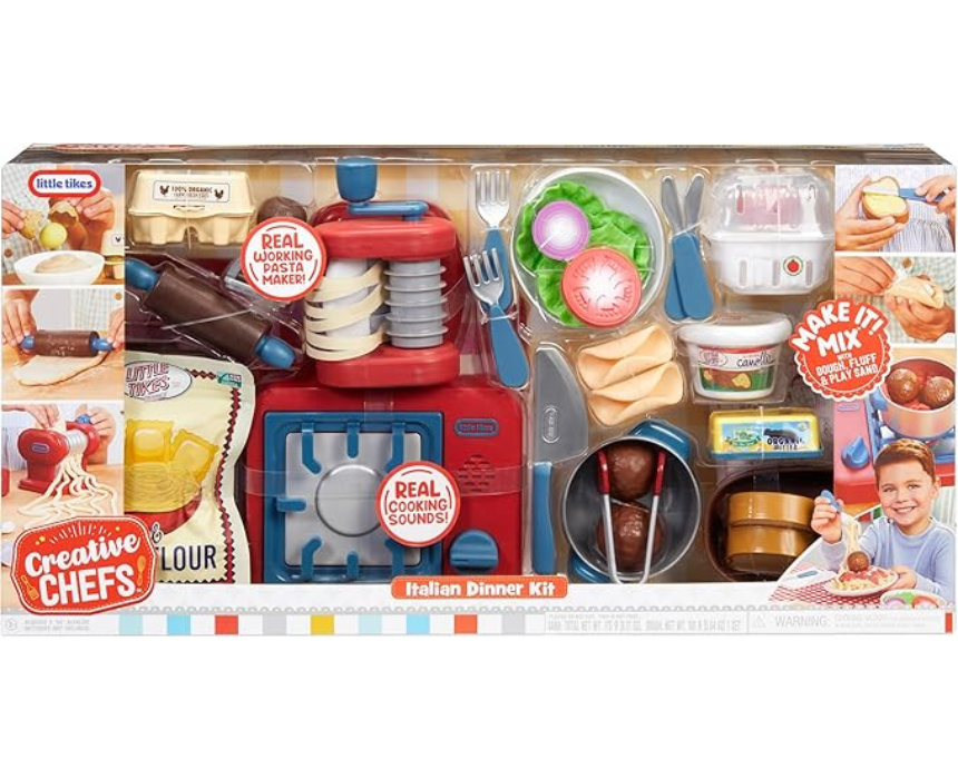 The Little Tikes Creative Chefs Italian Restaurant Kit lets kids enjoy imaginative cooking play by creating pretend Italian style meals with fun kitchen tools and moldable play materials. Designed for hands on creativity, the set encourages role play while helping develop fine motor skills and storytelling. Children can dress up as little chefs and serve their own pretend restaurant dishes for hours of playful fun.