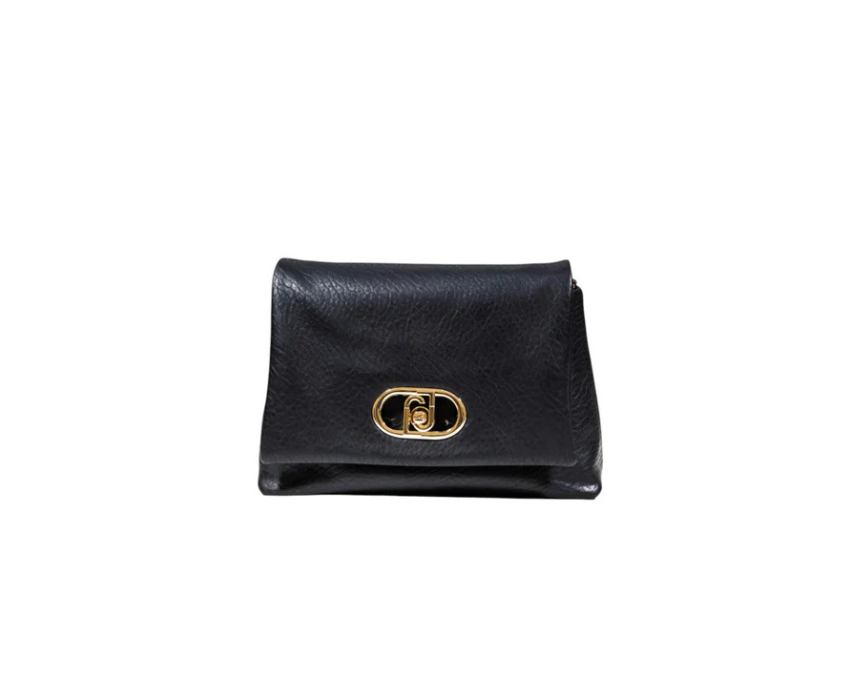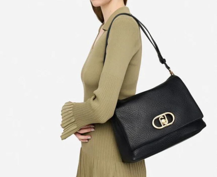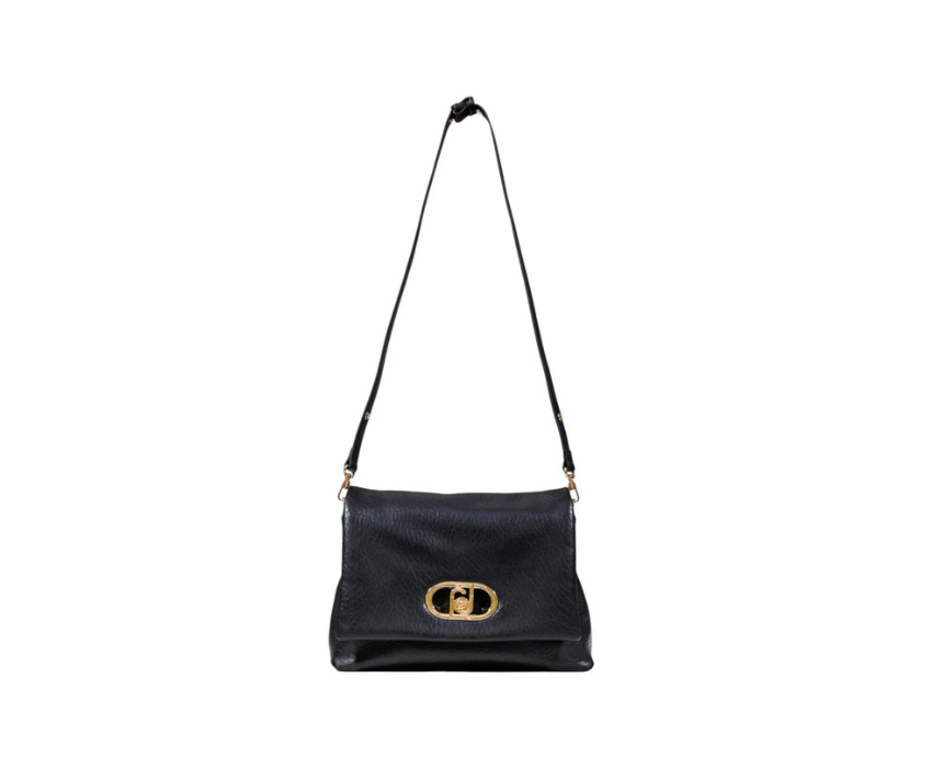 The Liu Jo ECS L Black Crossbody Bag is crafted from 100% polyurethane with a smooth leather look and structured silhouette for refined appeal. Measuring 32x22x12 cm, it features a timeless flap with hook button fastening, inside pocket, polished gold tone clasp, and an adjustable shoulder strap for versatile wear. Spacious and elegant, it elevates everyday outfits or completes sophisticated evening looks with ease.