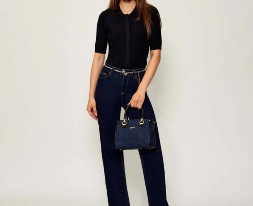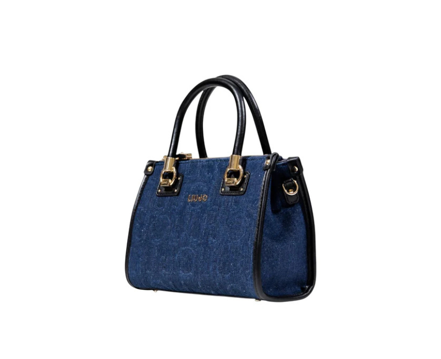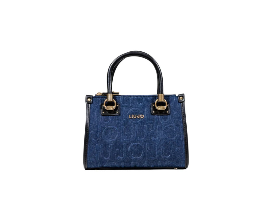 The Liu Jo Manhattan Shopper Bag is crafted from 70% cotton and 30% polyester with embossed denim and sleek black trims for a refined finish. Measuring 24x19x11 cm, it features a structured top handle design, secure zip fastening, gold tone hardware, dual handles and a detachable shoulder strap for versatile carry. Spacious and elegant, it complements workwear tailoring or elevates casual denim looks with effortless sophistication.