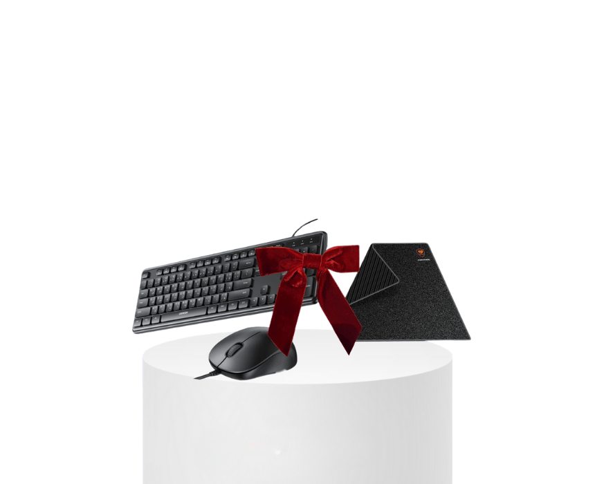 The Logitech Wired Keyboard and Mouse Bundle come with a responsive keyboard and mouse in sleek black, perfect for home or office use. Included is the Cougar Medium Gaming Mouse Pad measuring 320 x 270 x 3mm, providing smooth and precise control for both work and gaming sessions.