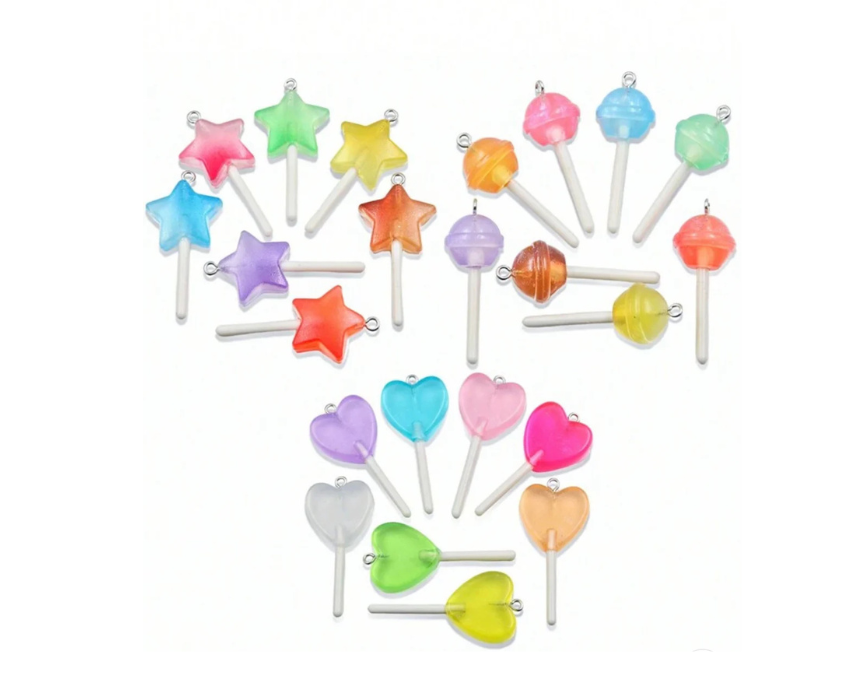 The Lollipop Charms are playful accessories designed to add a fun, colorful touch to jewelry or everyday items. Lightweight and easy to attach, they can be styled on necklaces, bracelets, bags, or keychains for a cheerful accent. Mix and match them to personalize your look or add a pop of character to simple styles.
