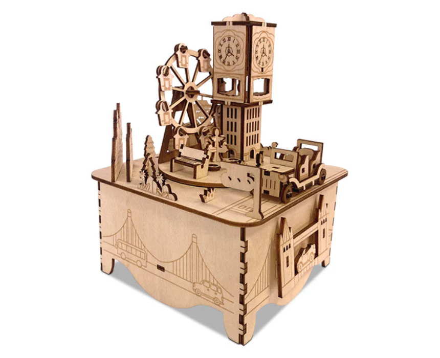 London Landscape Rotational Music Box 3D Mechanical Wooden Puzzle