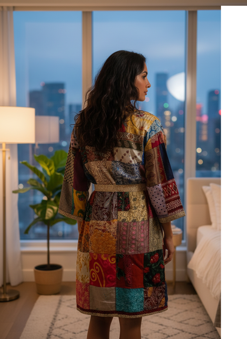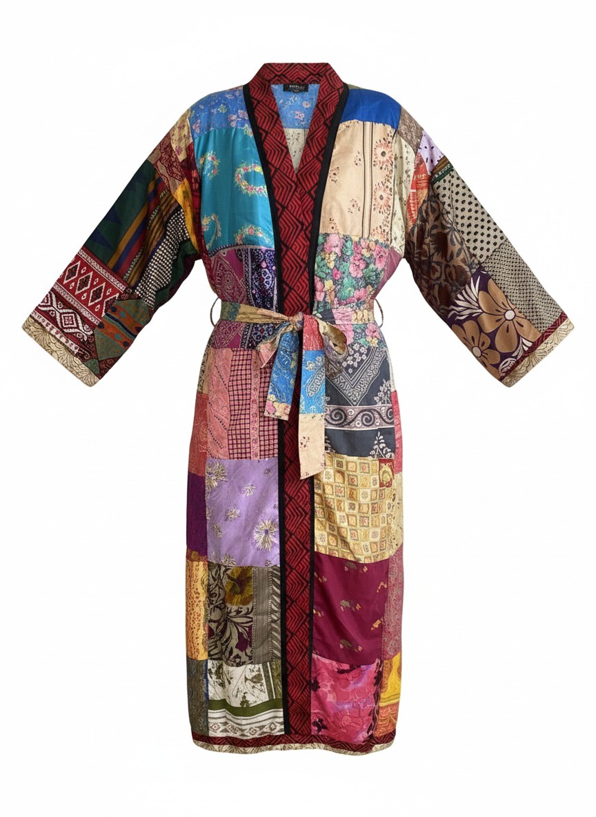Long Indian Patchwork Kimono Robe