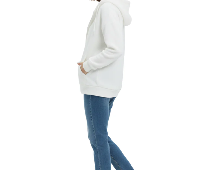 This long sleeve fleeced white jacket features a soft insulated interior and a full zipper closure for easy layering and adjustable comfort. Designed for warmth and everyday wear, it offers a clean, versatile look suitable for cooler weather. It can be styled over a t-shirt with jeans or paired with joggers for a relaxed casual outfit.