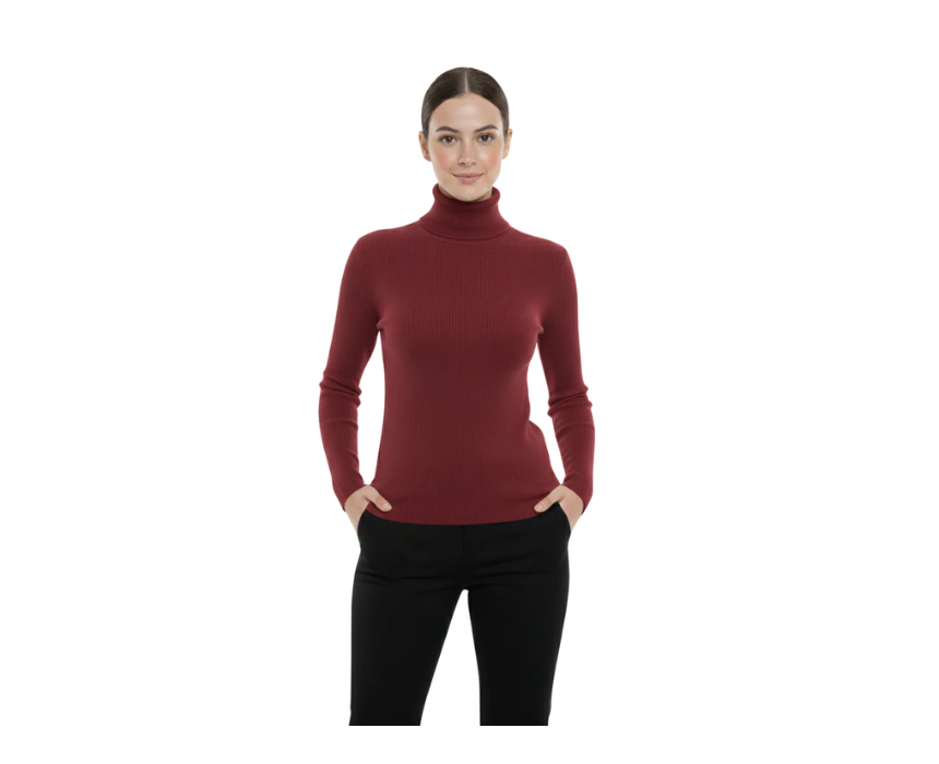Be the first to review “Long Sleeve High Neck Ribbed Bordo Pullover”