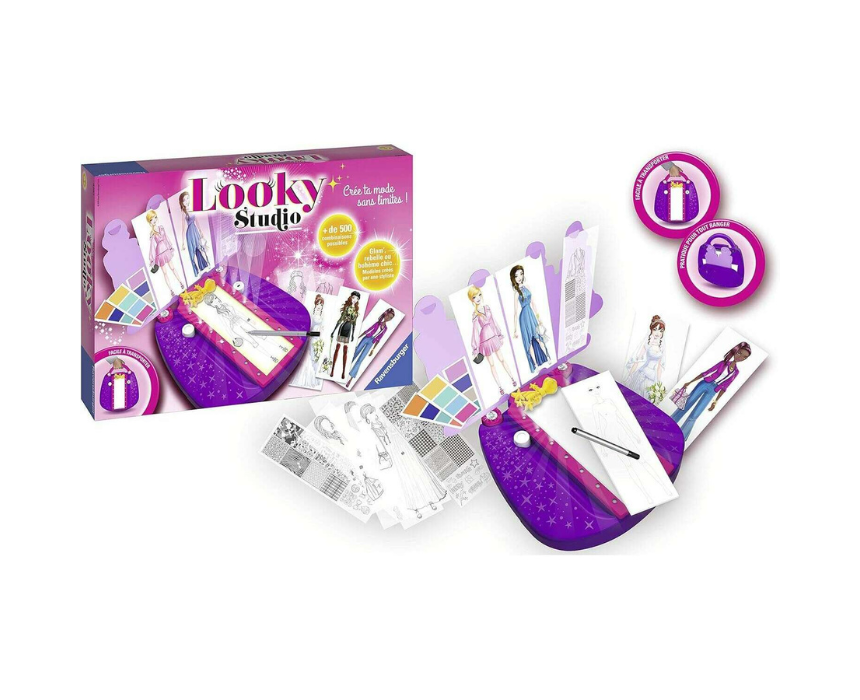 Looky Studio by Ravensburger is a portable fashion design kit that lets children create their own stylish outfits and explore endless fashion combinations. The set includes a light table, 28 outfit sheets, 40 silhouette sheets, a fine black felt-tip pen, and a transportable light module with storage, allowing young fashionistas to design anywhere. Perfect for inspiring creativity, imagination, and artistic expression in children.