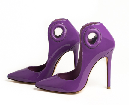 This unique design features a small window to peek at the Achilles, adding a playful twist to a classic silhouette. Step confidently and turn heads with these eye-catching statement heels. Features an 11-cm heel.