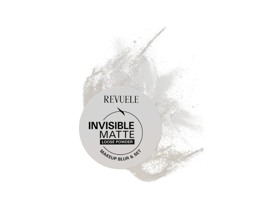 REVUELE LOOSE POWDER INVISIBLE MATTE is a mattifying, ultra-lightweight loose powder that keeps makeup flawless all day. It provides a soft matte finish, controls shine, camouflages minor imperfections, and leaves the skin looking even and radiant. Suitable for all skin types, fragrance-free and cruelty-free, it is perfect for daily use and quick touch-ups on the go.