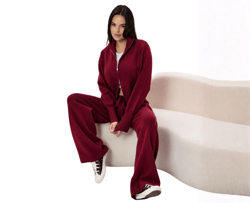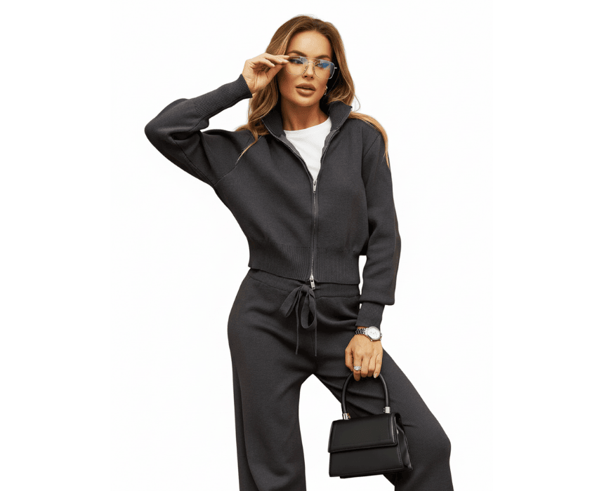 The Lore Set is a sleek dark grey activewear set made from soft cotton, available in S-M. Featuring stylish dark grey and burgundy tones, it’s perfect for workouts, yoga sessions, or comfortable athleisure wear.