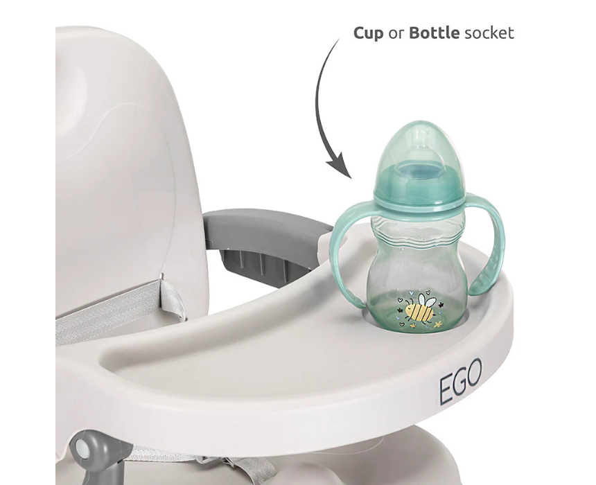 The feeding chair EGO 2in1 is designed to provide a comfortable and secure seating solution for children during mealtime, featuring a stable structure and practical convertible functionality for extended use. It supports proper posture while offering easy cleaning surfaces and user friendly adjustments for everyday convenience. Its modern and versatile design allows it to blend seamlessly into dining areas or kitchens while maintaining a neat and organized look.